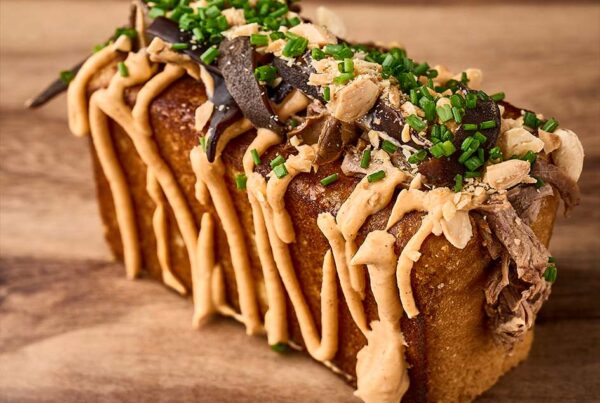 Brioche de carrillera guisada a fuego lento en su jugo, setas de temporada,